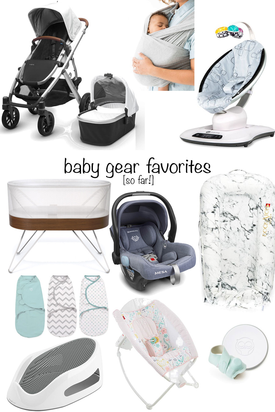 Before we had Shiloh I thought these things were strangely overpriced and overrated. I didn’t get the hype. That all changed though about 3 days after Shiloh was born haha we LOVE THE DOCKATOT. It’s basically a bed for your baby that you can carry to any room in your house and put on any surface. A lot of times when we’re eating dinner we put her on the dining room table in the dockatot while she sleeps haha. She naps so well in this thing, and sometimes we’ve even let her sleep in it at night. It’s lightweight and snuggles the baby in really well which is why I think they like it. We also use this when we’re watching a show downstairs or something – we’ll just put her in the dockatot on the couch next to us!