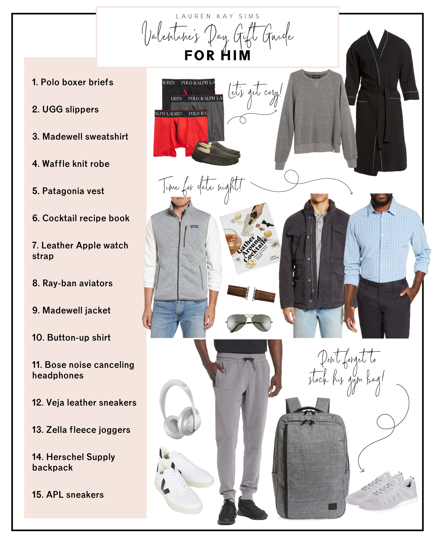 Y’all one of my favorite holidays of the whole year is just about 2 weeks away! I’ve been brainstorming what I’m going to get Michael this year, so in case you’re also needing some ideas for your man…I wanted to round up lots of great v-day gift ideas for him to help get your wheels turning! You can click or tap on any of the products in the collage to shop them!